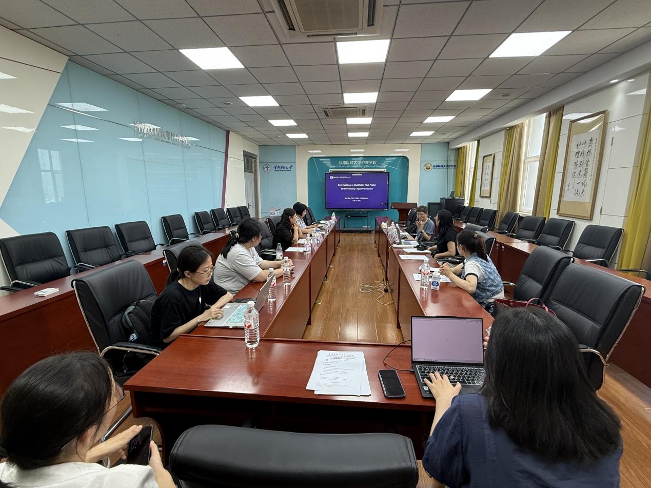 学术分享环节,吴蓓以 “Oral Health as a Modifiable Risk Factor for Preventing Cognitive Decline” 为主题作精彩报告。她讲解了痴呆症的14个可改变风险因素,以及口腔健康在认知功能保护中的关键作用,并分享了团队依托全球大型数据库开展的口腔健康与老年认知功能关联的实证研究及干预成果,为相关领域研究提供了重要参考。