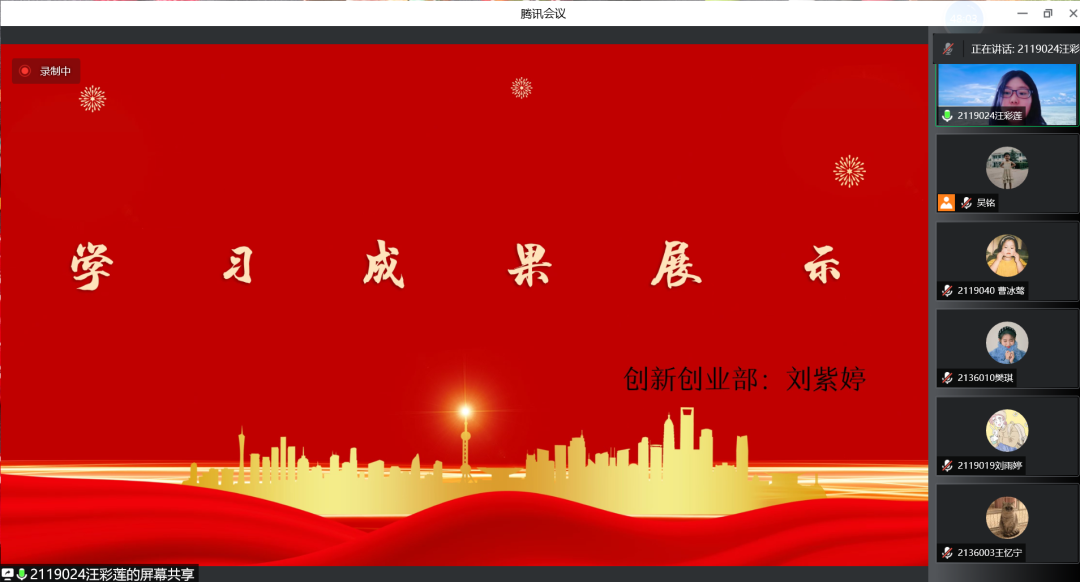 同学们在自由交流感想后,各个部门分别从不同视角、不同维度向大家介绍了党史团史的重要内容,并展示了部门理论学习的心得感悟。