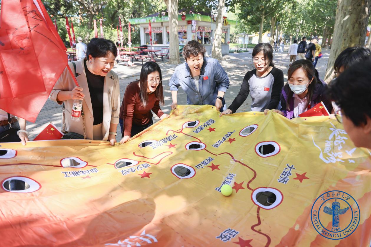 活动围绕“现场参与大阅兵分享”“红色密码”“重走长征路”“红歌传唱”四大环节展开,集知识性、趣味性、教育性于一体。“现场参与大阅兵分享”中,邀请参与观看九三阅兵仪式的护理学基础学系主任岳鹏和参与大阅兵合唱团的2022级护理本科生徐家新分享了激动人心的感想;在“红色密码”中,教师们通过党史知识竞答与逻辑推理,重温党的光辉历程;在“重走长征路”中,通过团队协作模拟长征艰险,锤炼意志品质;在“红歌传唱”中,用歌声凝聚信念,激发爱国热情。