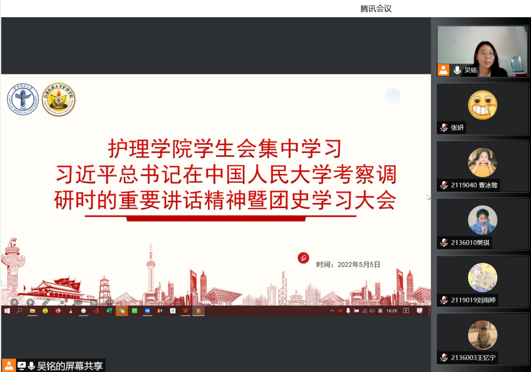 为了深入学习习近平总书记在中国人民大学考察调研时的重要讲话精神,继续深入开展学生会党史团史理论学习,进一步提升院学生会“自我教育、自我管理、自我服务”的意识,喜迎党的二十大,庆祝建团百年,哔咔漫画官网 学生会于5月5日召开线上召开习近平总书记在中国人民大学考察时重要讲话精神暨党史团史学习大会,增强理论学习交流,夯实理论学习成果,提升院学生会凝聚力、战斗力。