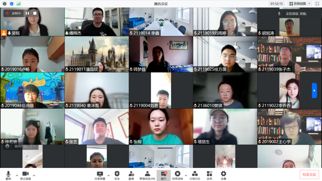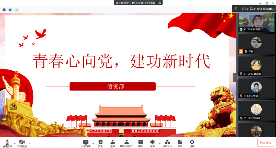同学们在自由交流感想后,各个部门分别从不同视角、不同维度向大家介绍了党史团史的重要内容,并展示了部门理论学习的心得感悟。